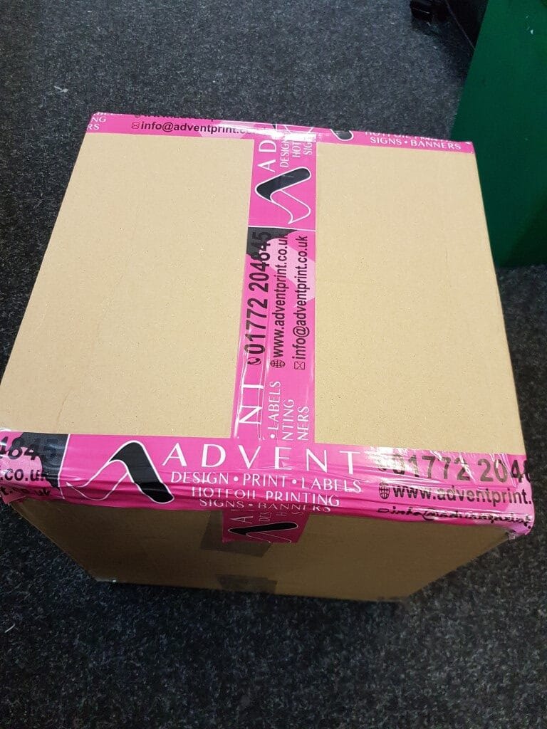 We Here at Advent we can design and print custom printed packaging tape. Branded packaging tape is a great way to get your business and brand noticed. Ask yourself is your brand seen regularly and by as many people as possible? If the answer is no then custom printed packaging tape is a must for your business as brand awareness is key to growth and development.